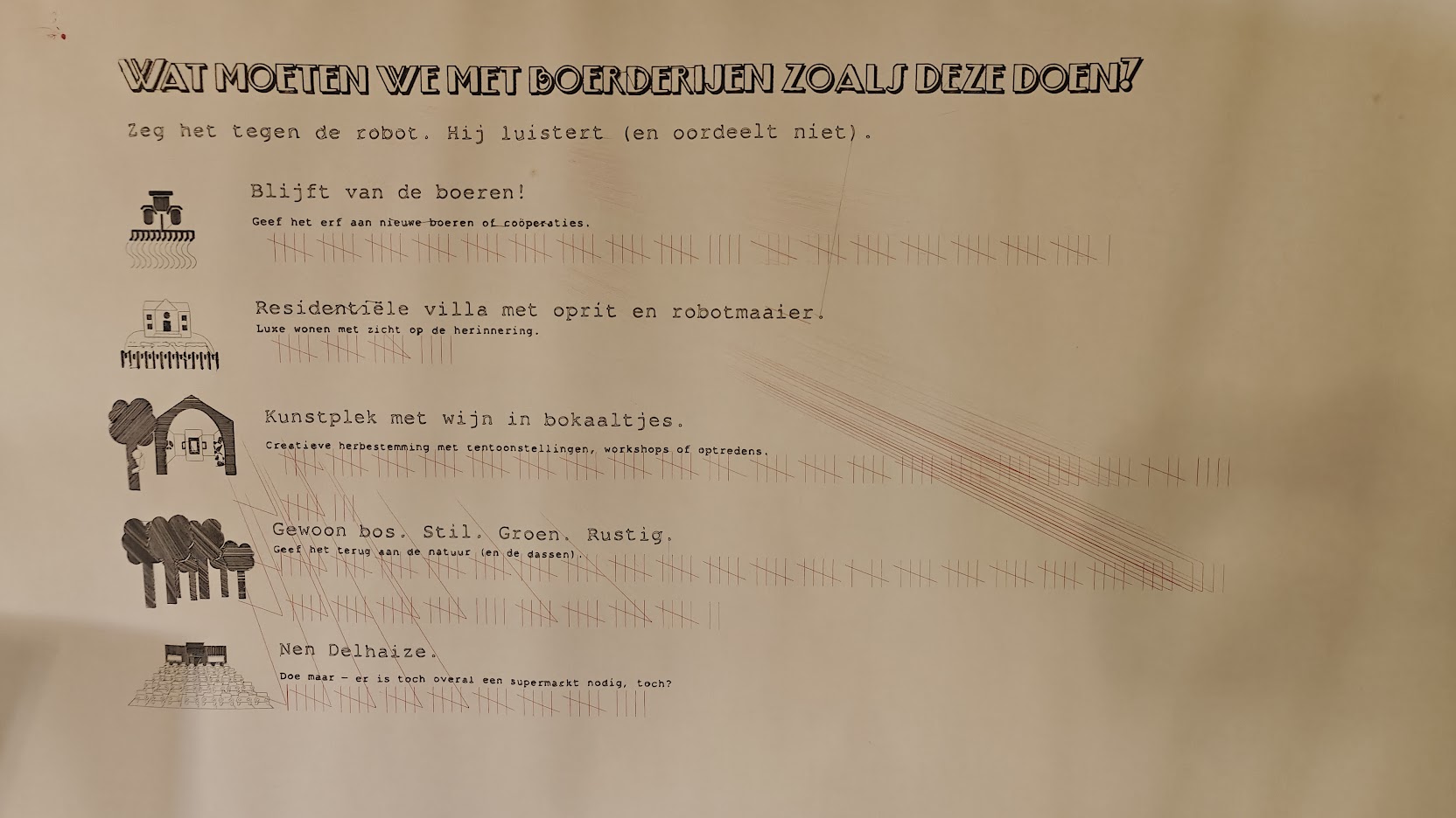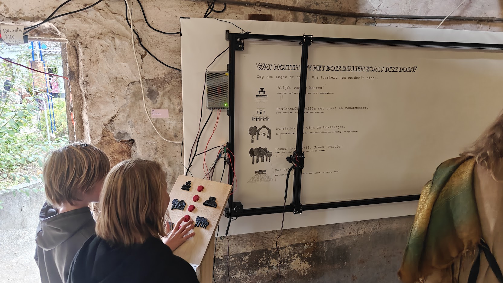 In the same place I was able to show the plotter again, this time as an interactive installation where people visiting could leave there vote as to what should happen to our abandonded farming patrimonium.