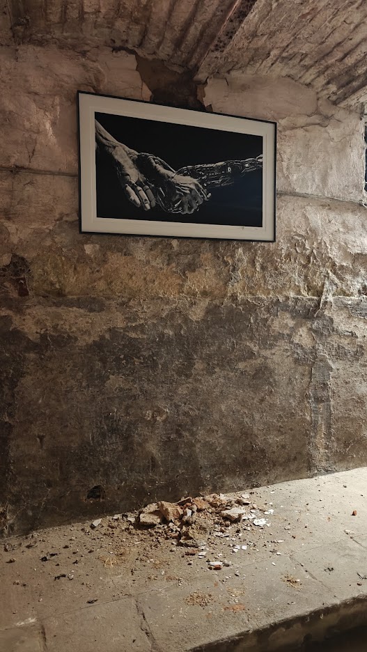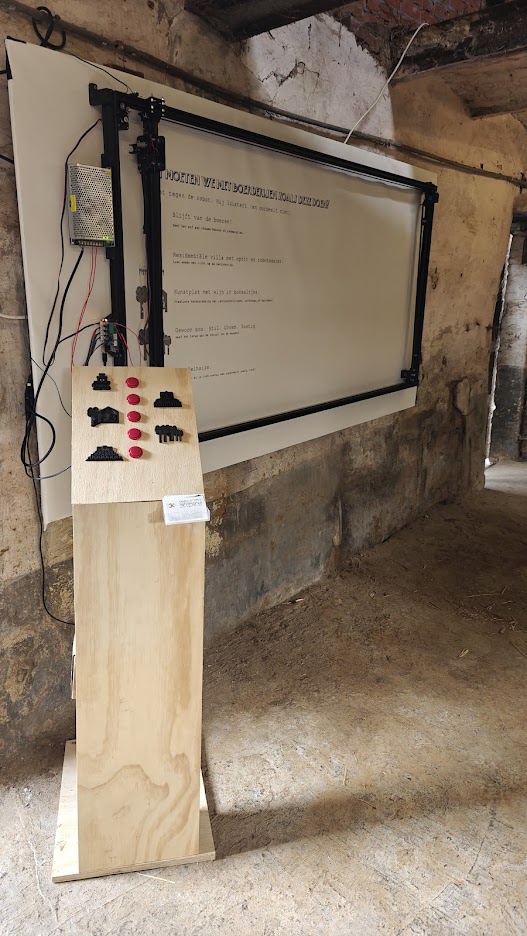 Just like last year I was invited to show some work in the magnificant context of this old abandonded (soon to be destroyed) farm in Kluisbergen. The setting, where about 50 artist meet up in a setting of interventions and let yourself be inspired by the place to show your work, was the backdrop to show AI, give me a hand again. Instead of the white box, the ruins of a cow stable, once the achievement of a farmer that probably never used AI to do his job, gave some body to the hands.